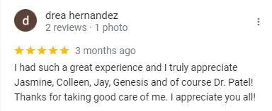 Upon your visit with Dr. Patel, you can expect a tailored treatment plan with attention to the smallest details.